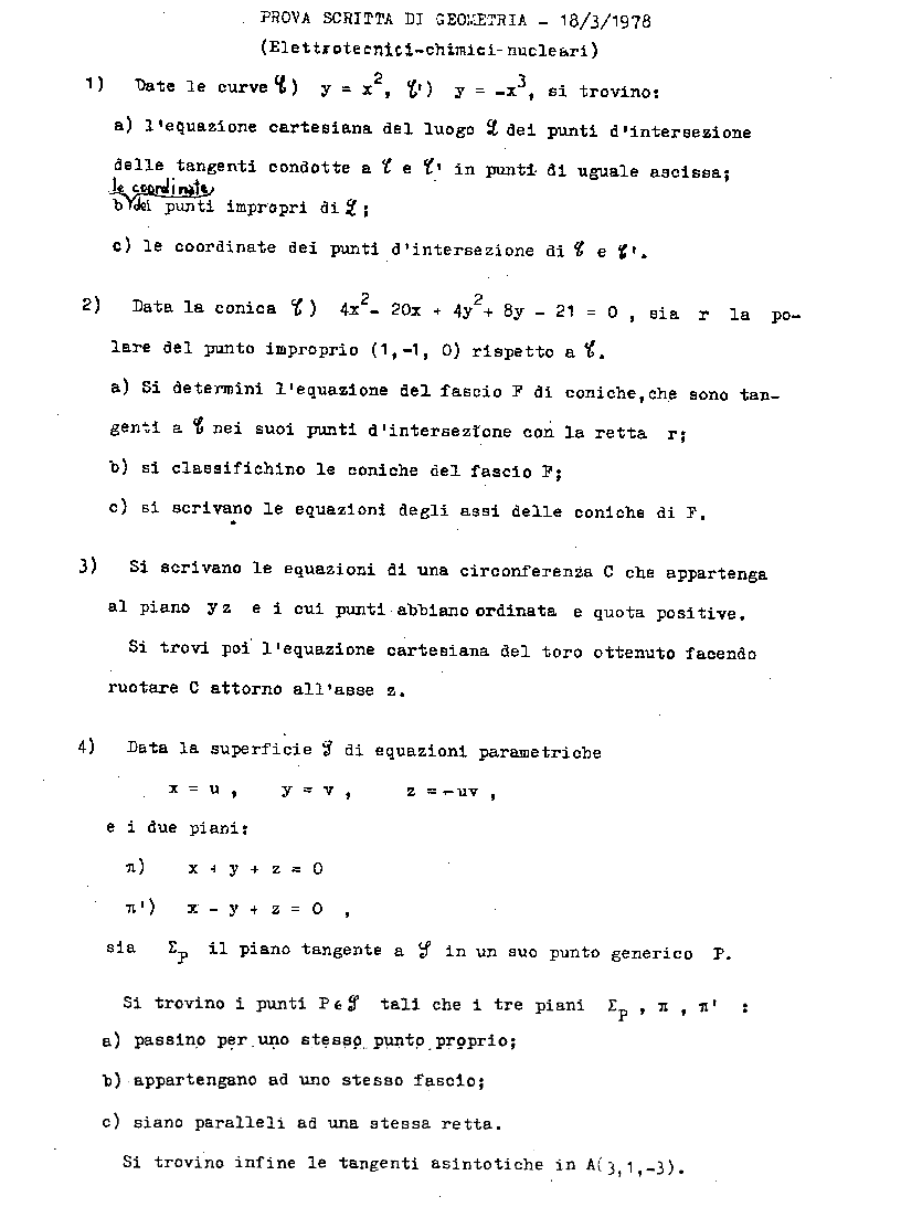 domanda che terrorizzava era: "Mi indichi i punti ellittici, parabolici