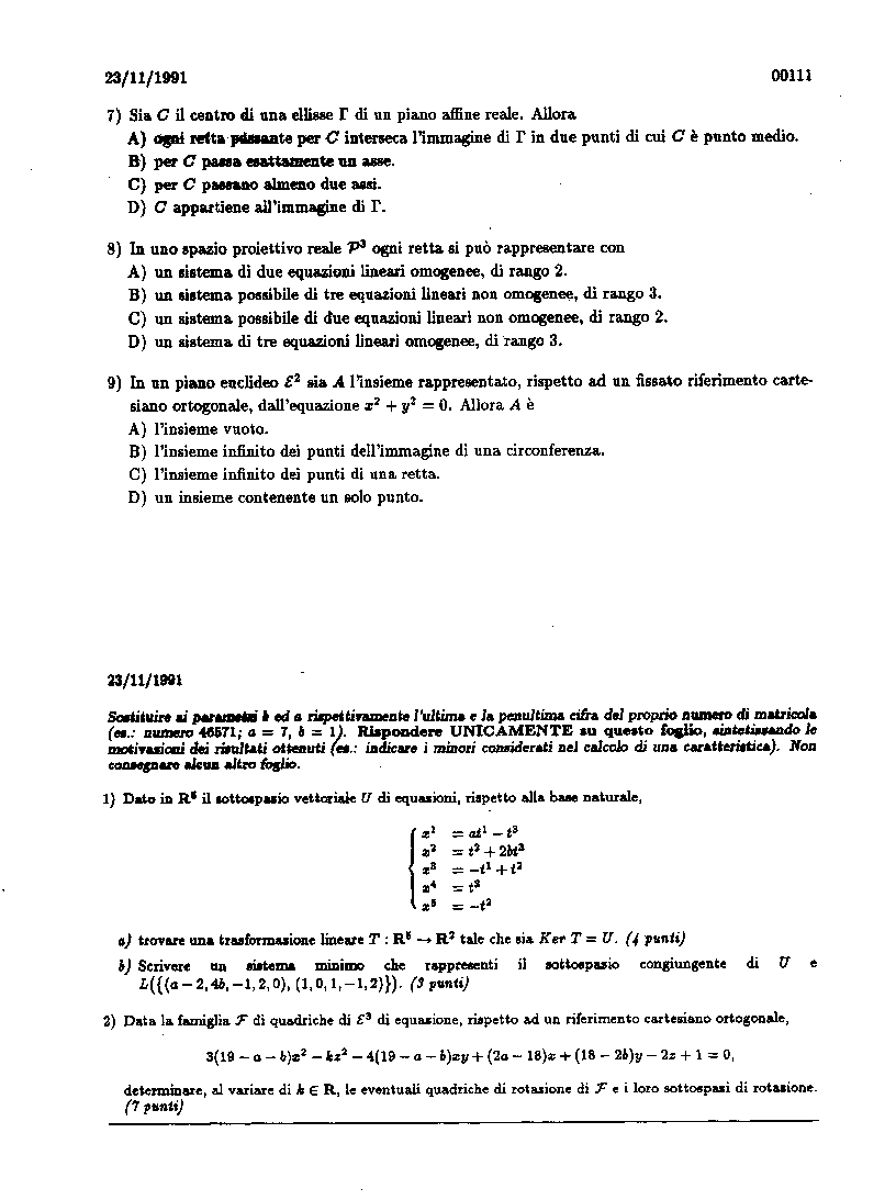 La struttura attuale dell'esame risale al 1991; ne riporto una prova (