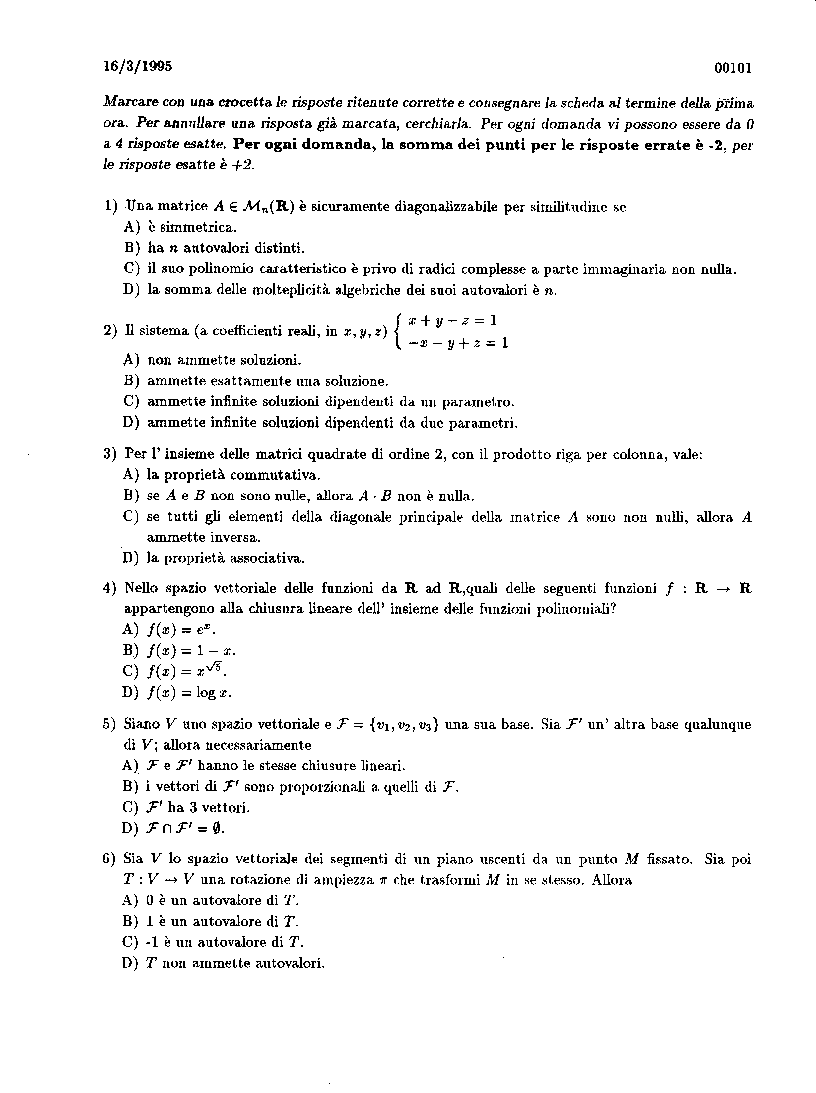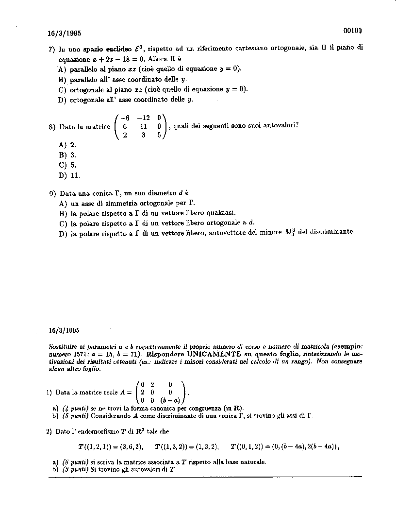 in particolare alla teoria degli autovalori. La struttura dell'esame